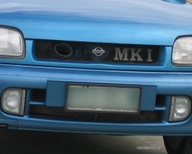 the MK1 gives it another "quality", how did u stencil that on ther by the way? the nissan badge in the middle also looks really cool! however any grill u decide to make and design is UP TO U! Napster (i covered number plate cause u did it on the rest? |